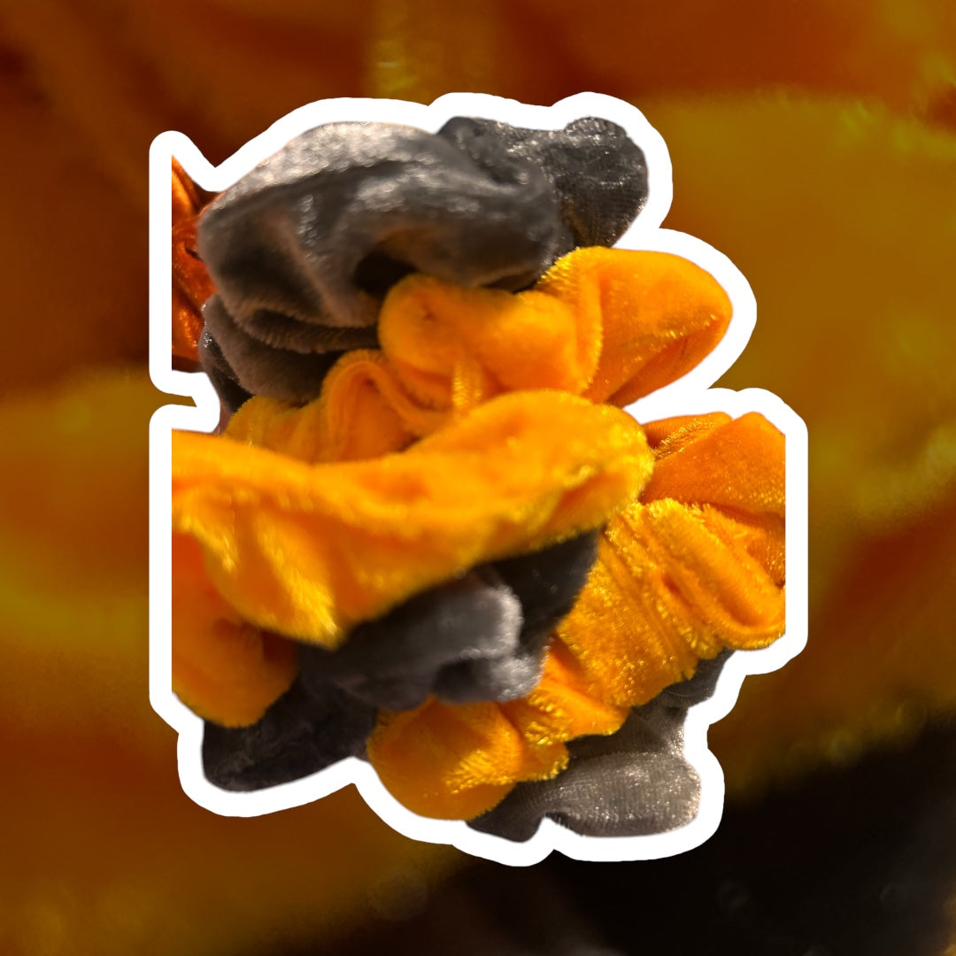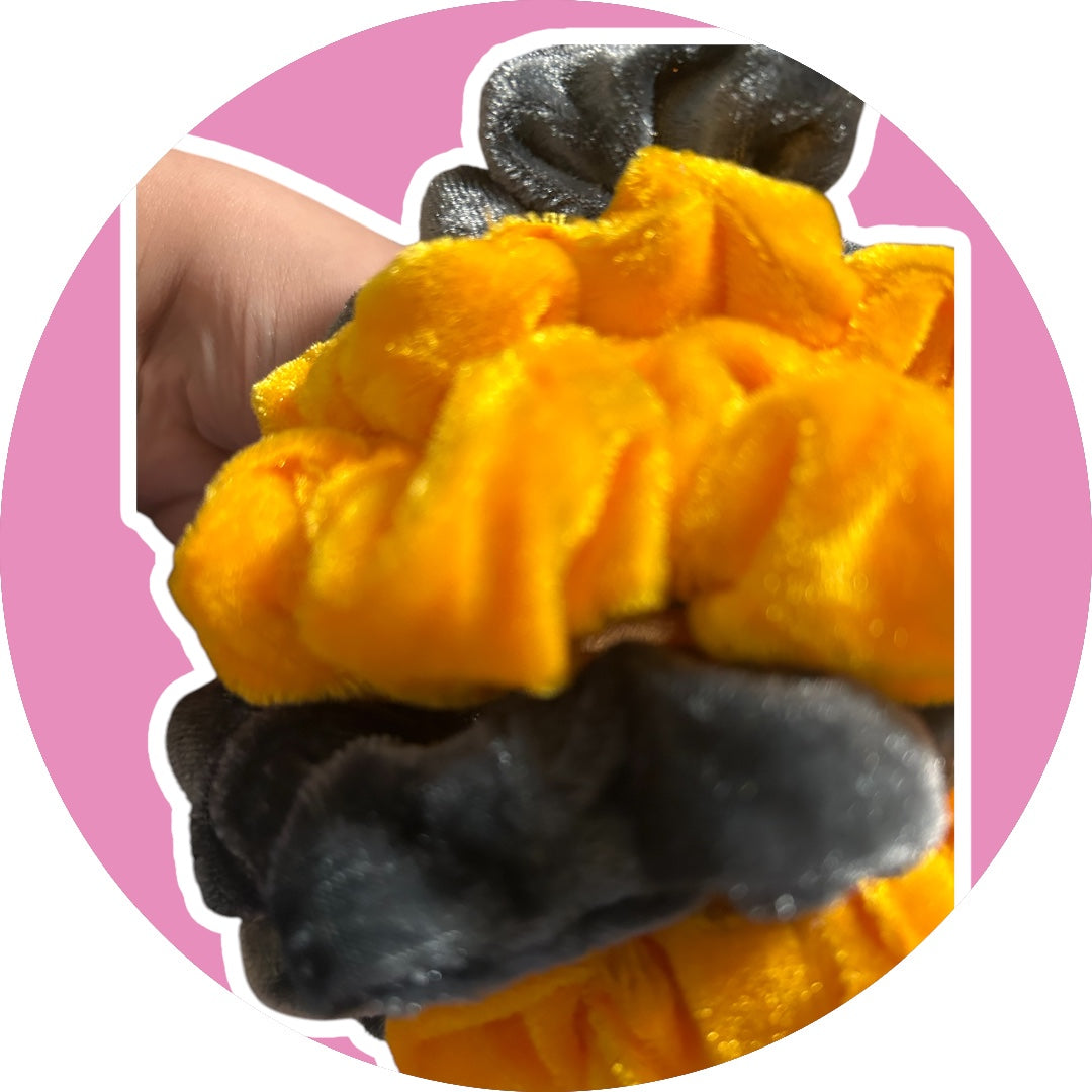Two pack scrunchies, yellow orange and a gray scrunchie they are washable.