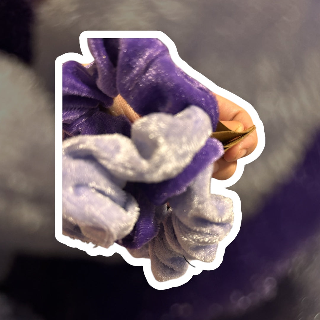 Two pack gray and purple scrunchie.