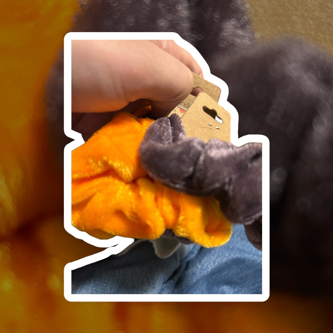 Two pack scrunchies, purple, gray, and orange yellow .There are also washable.