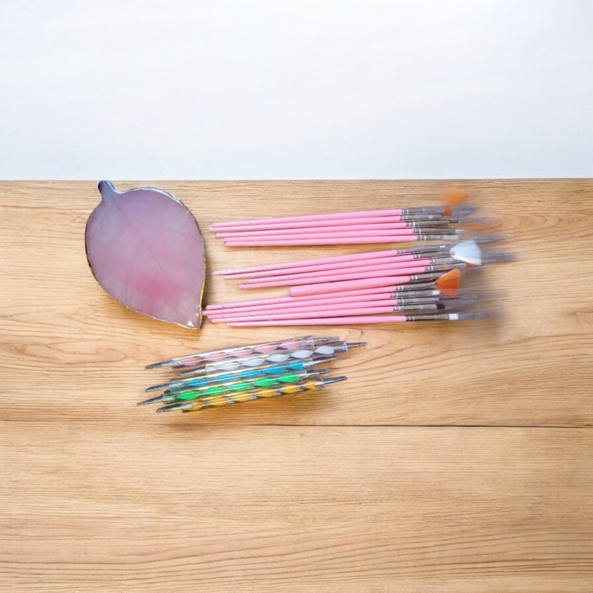 Nail , brush's and dotting tools,Pink leaf resin plate set